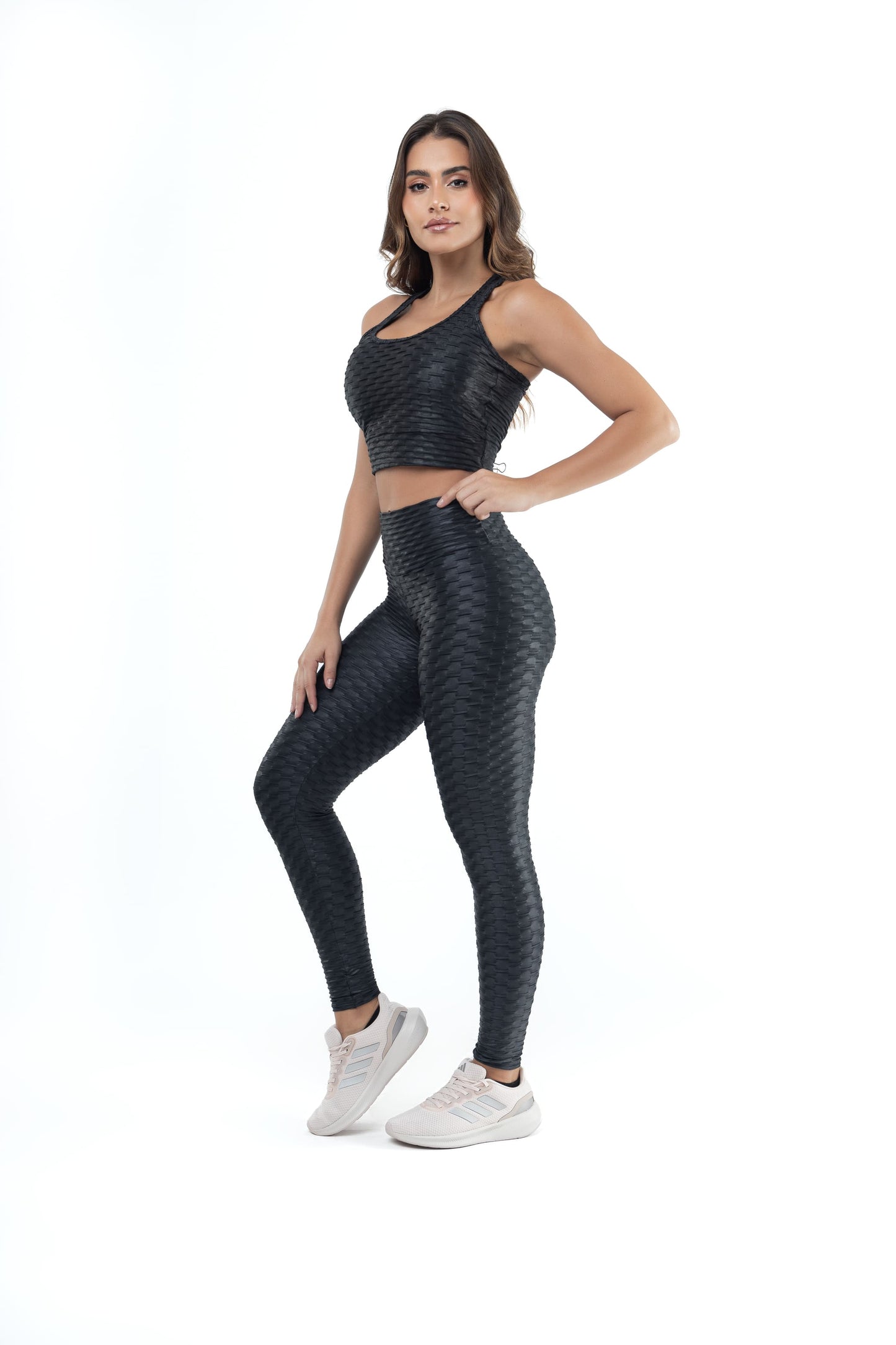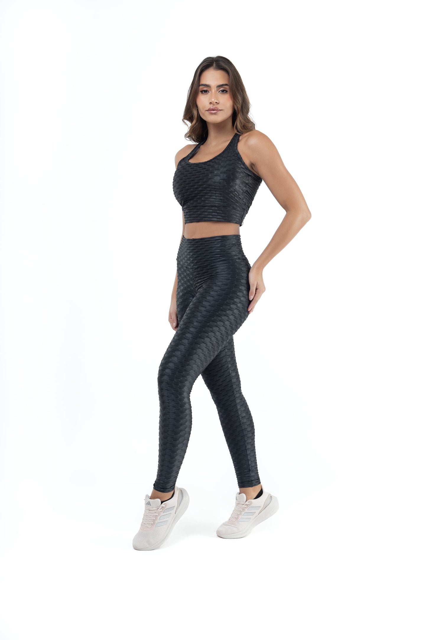 Experience the ultimate blend of comfort and style with our Brocada Textured Anti-Cellulite Leggings. Our textured style with four-way stretch and an innovative, design that lays perfectly on your body for a fit you’ll feel confident in. This material comfortably , sculpts, conceals and flatters your curves through a range of sizes.